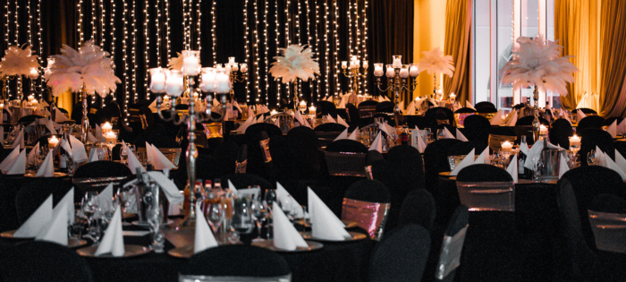 rezerwację miejsc przy elegancko nakrytych stołach,