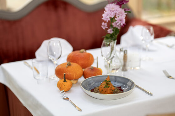 | Pieczona dynia, placki ziemniaczane, pieczona cukinia, sos jogurtowy (danie wegańskie) | 42 zł |