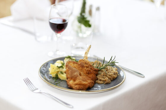 | Kotlet schabowy, ziemniaki z koperkiem, kapusta kiszona z kminkiem | 64 zł |